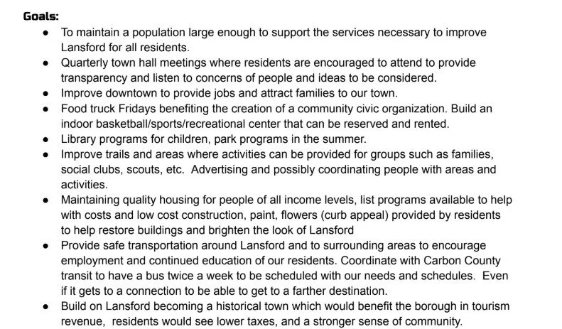 Higher home values would make Lansford more marketable to families and lower taxes could bring businesses and jobs to the area.